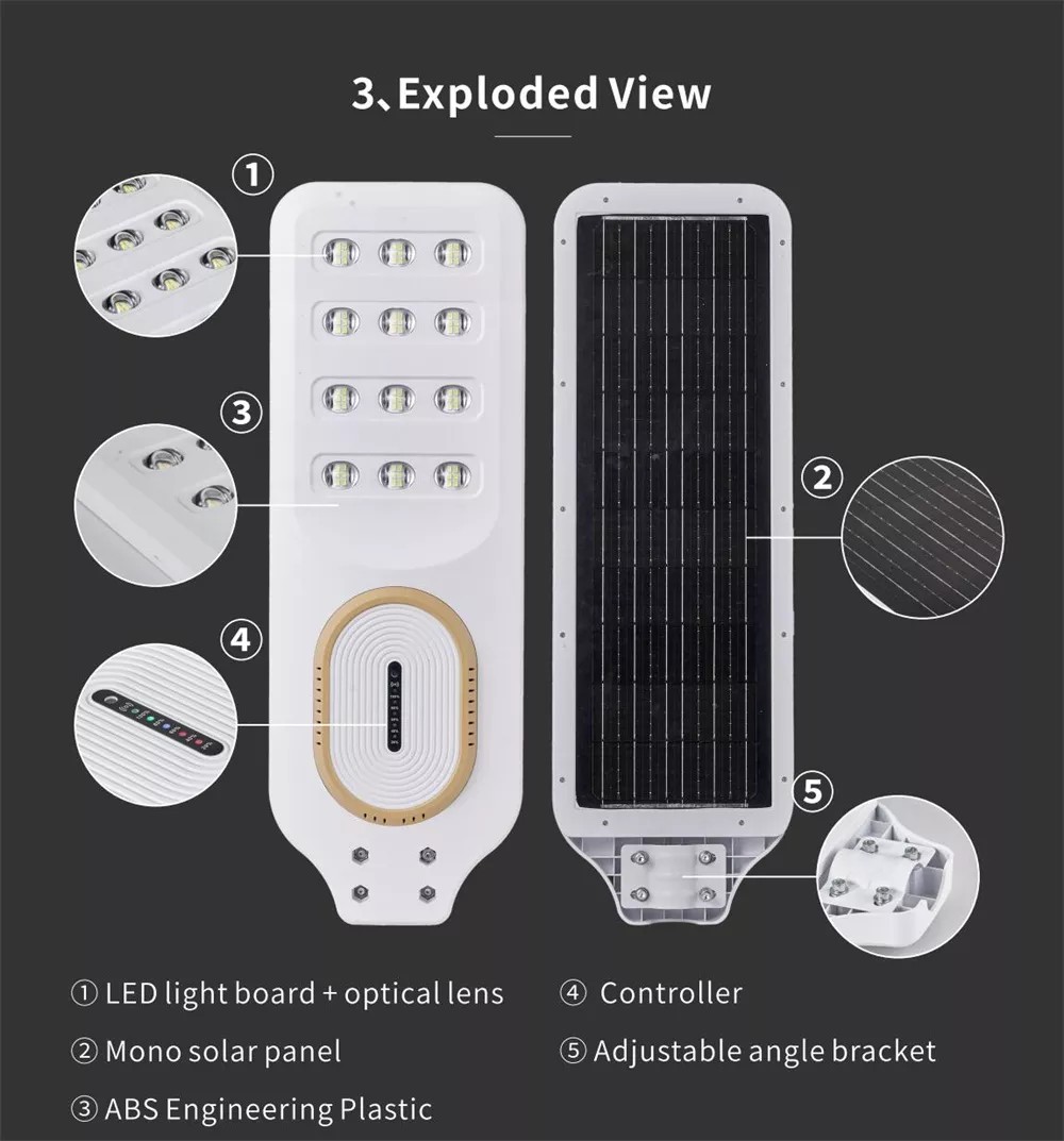 Solar Street Light ABS 400W (ZL16-400) | 30Ah 3.2v LiFePO4 Battery with BMS | Built-In Motion Sensor | 6000K | 3 Years Warranty | Dusk to Dawn Solar Lighting | Remote Control (400, Watts)