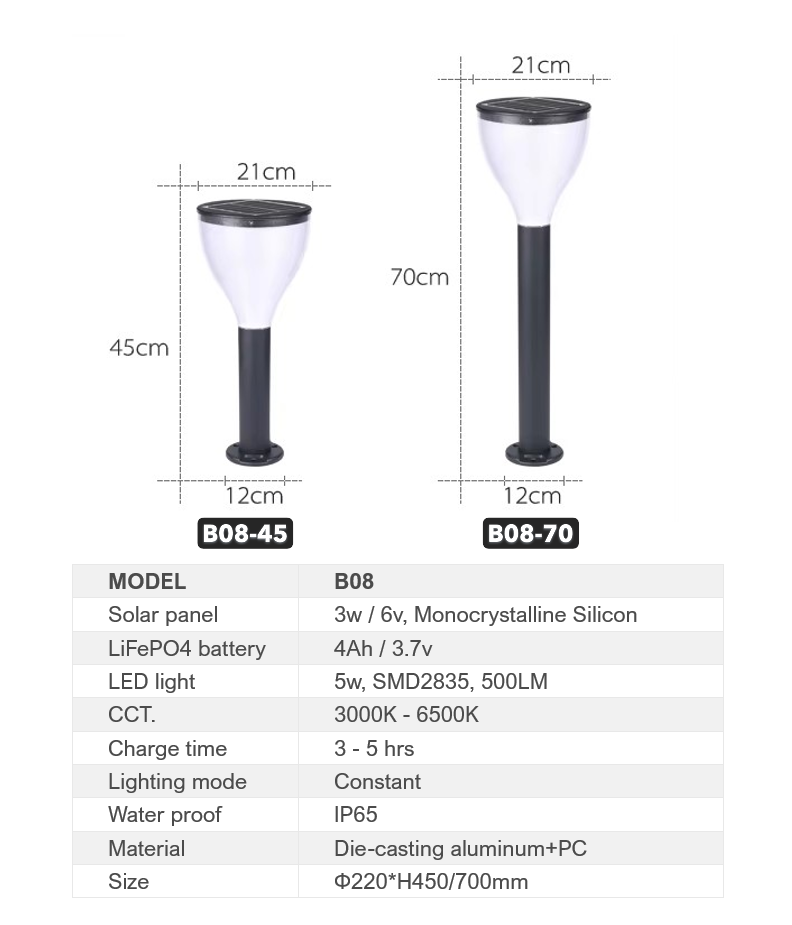 Solar bollard light (B08) – High-Performance Solar Lighting Solution