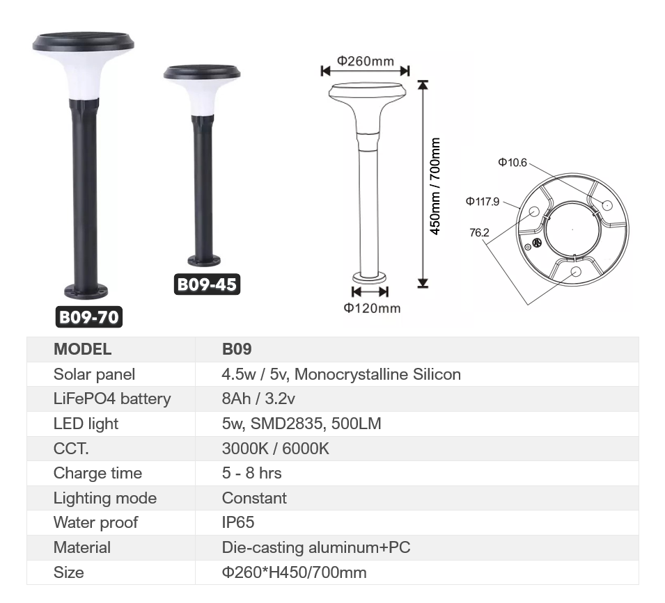 Solar bollard light B09 – High-Performance Solar Lighting Solution
