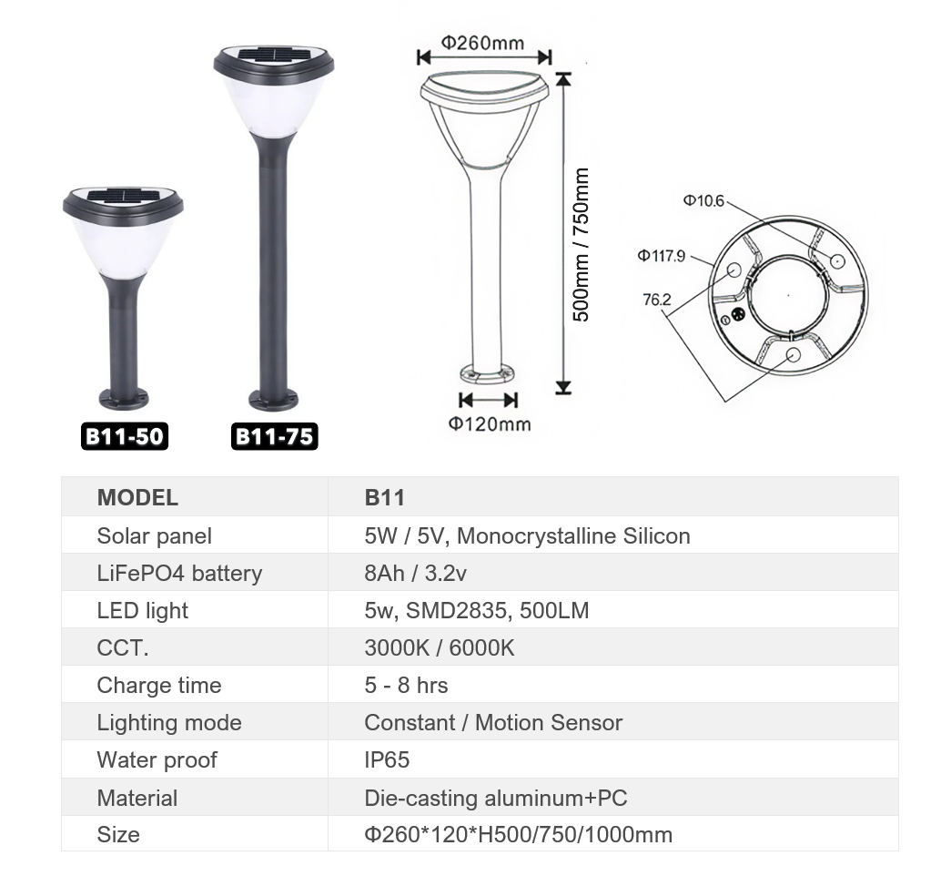 Solar bollard light B11– High-Performance Solar Lighting Solution
