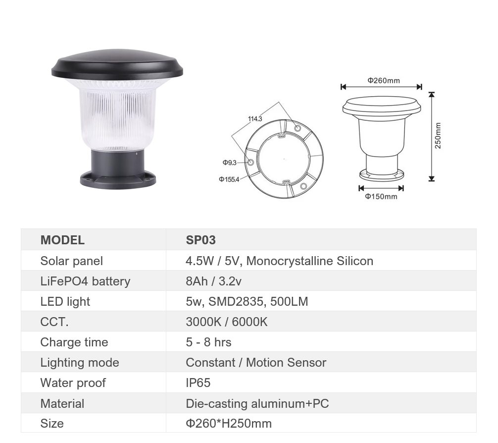 SOLAR PILLAR LIGHT (SP03) – High-Performance Solar Lighting Solution