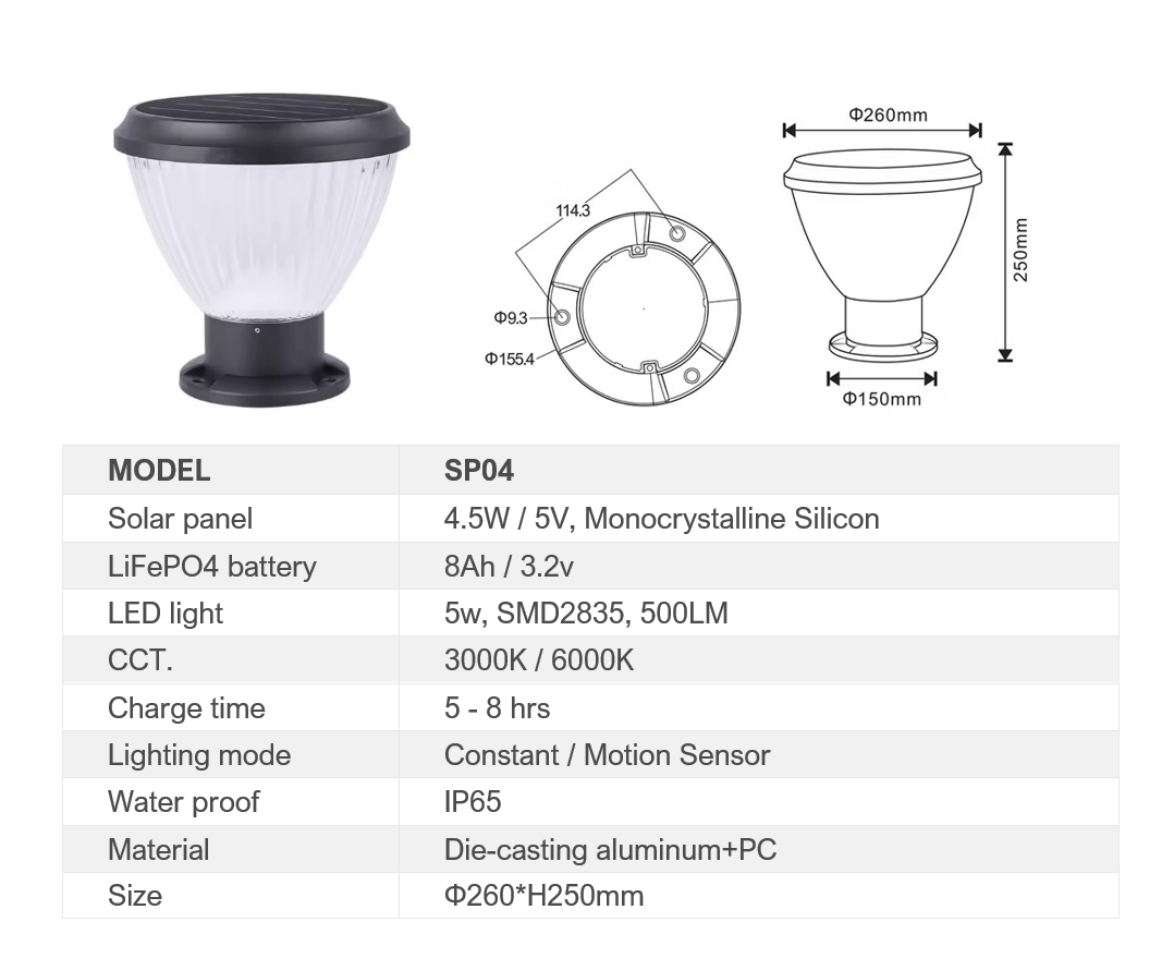 SOLAR PILLAR LIGHT SP04 – High-Performance Solar Lighting Solution