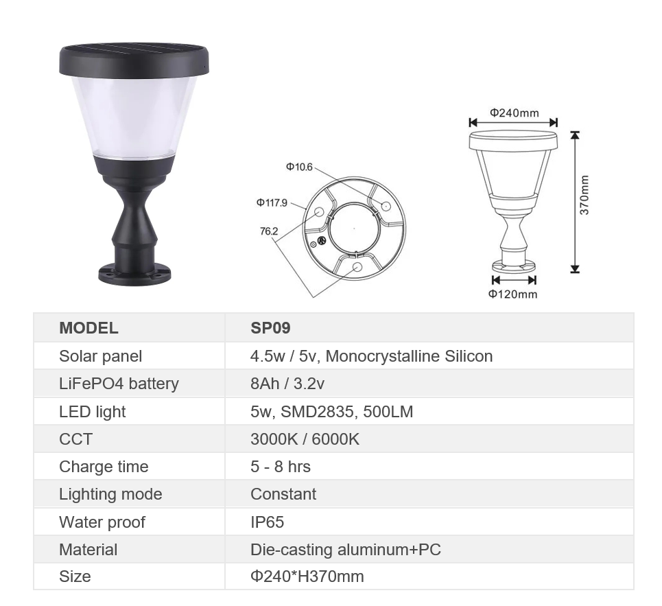SOLAR PILLAR LIGHT (SP09) – High-Performance Solar Lighting Solution