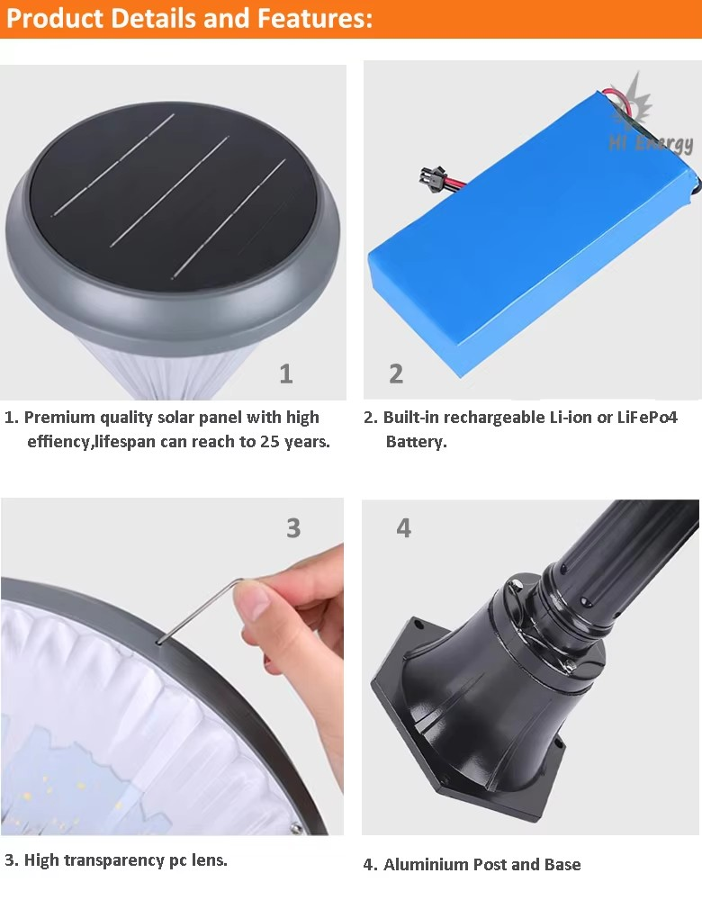 Description: 1M pole with 1pcs solar lamp, head, Standard Spec, 3000K
